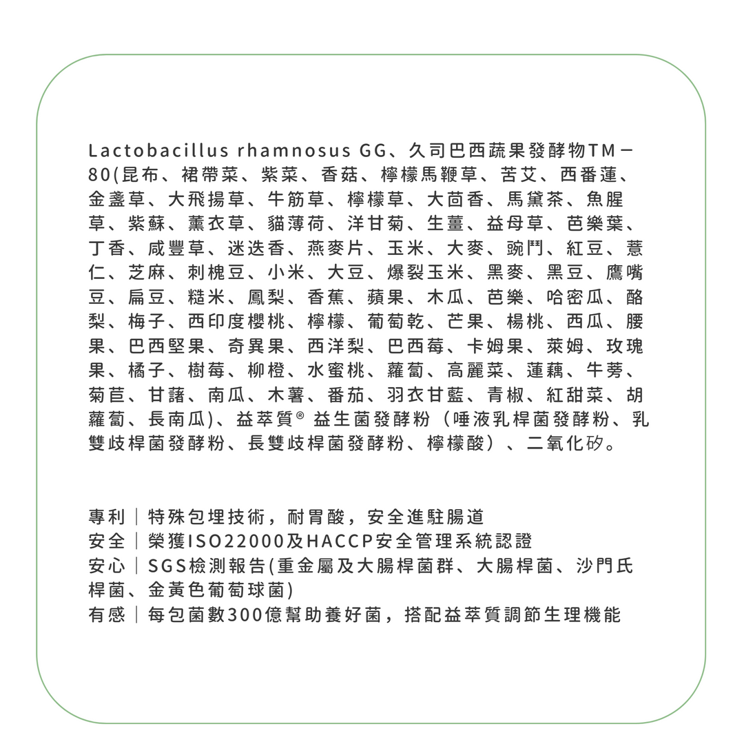 內含四大菌株 300億守護 :